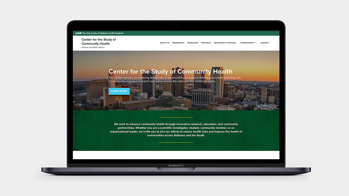 The website I designed for the UAB Center for the Study of Community Health (CSCH) enhances accessibility, clarity, and engagement for a leading public-health research center within the University of Alabama at Birmingham School of Public Health. The CSCH focuses on reducing health risks and advancing community well-being across Alabama through collaborative research, education, and partnerships with local organizations and residents.